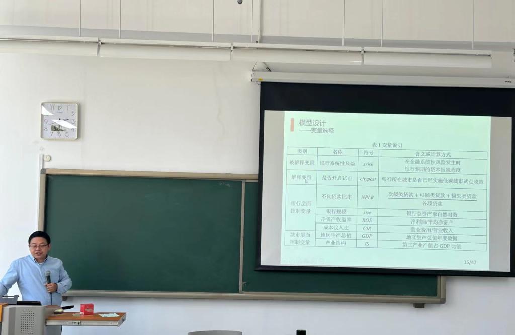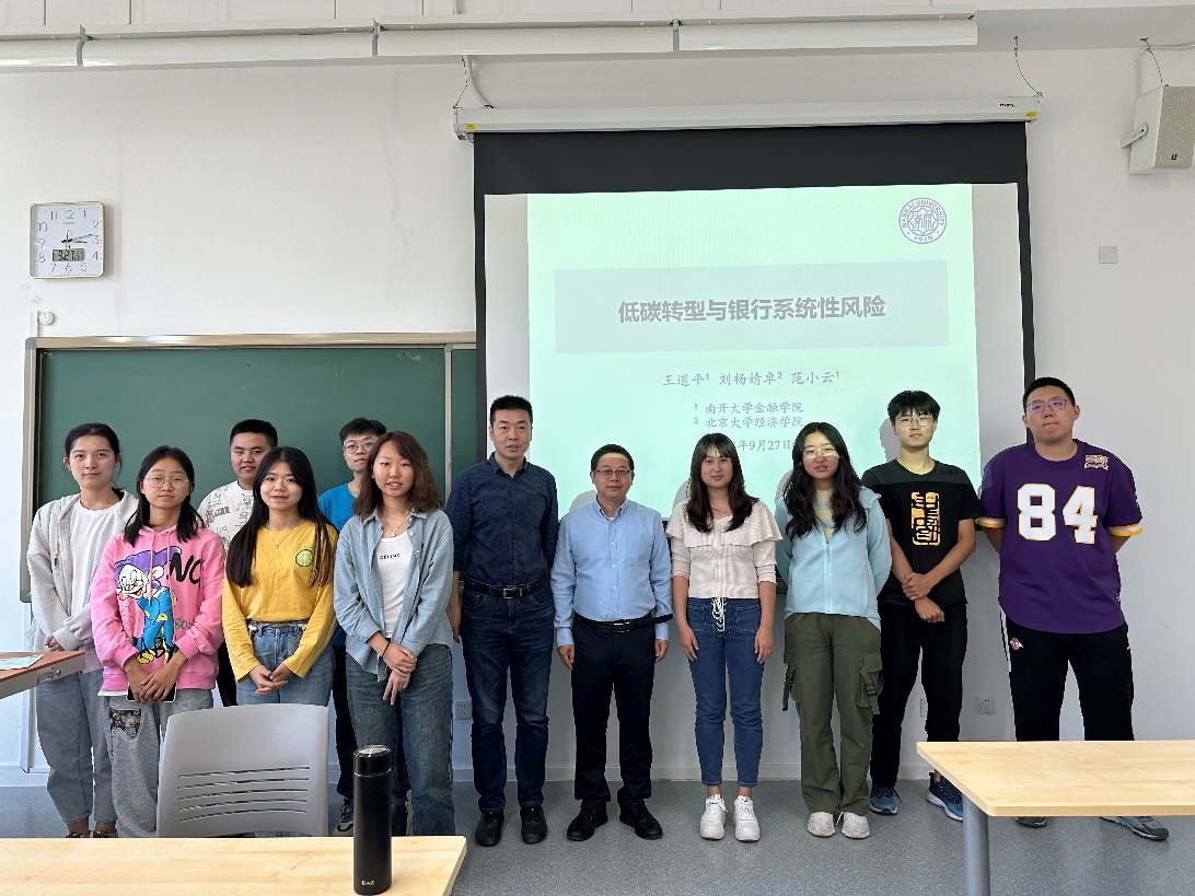2023年9月27日下午,南开大学金融公司王道平副教授应邀在大数据与管理科学系列讲座上做了《低碳转型与银行系统性风险》主题报告。本次讲座在沙河二教203教室举行,由管理科学系魏璐老师主持,哈哈体育副经理荆中博老师和多位同学参加,共同探讨了低碳转型与金融系统性风险的关键问题。
