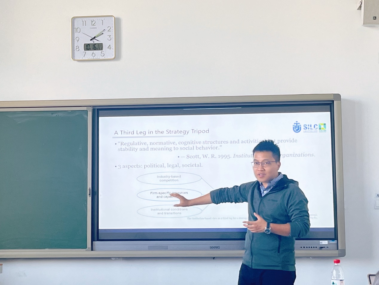2023年10月16日下午,上海大学悉尼工商公司马汉阳副教授应邀在建设经济与管理系列论坛上做了《国际视域下工程项目管理研究的制度视角——基于三顶研究的探讨》主题讲座。本次讲座在沙河二教109教室举行,由哈哈体育建设经济与管理系吴国滨老师主持,工程与项目管理专业23级硕士生参加了讲座,共同探讨了制度视角下国际工程项目管理的系列研究问题。