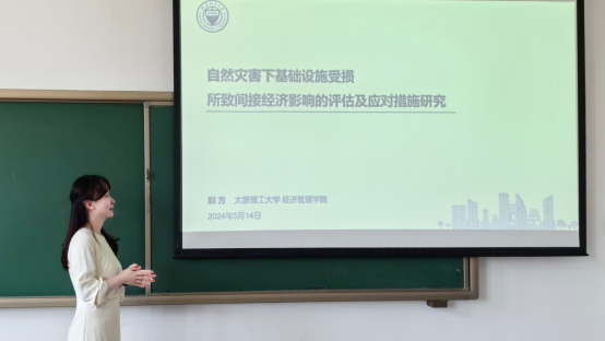 2024年5月14日上午,于沙河校区二教207,太原理工大学经济管理公司副教授尉方应邀在《工程与项目管理研究方法论》课上作《自然灾害下基础设施受损所致间接经济影响的评估及应对措施研究》主题报告。报告由哈哈体育建设经济与管理系副主任茅权博士主持,工程与项目管理一年级研究生参加了本次主题报告。