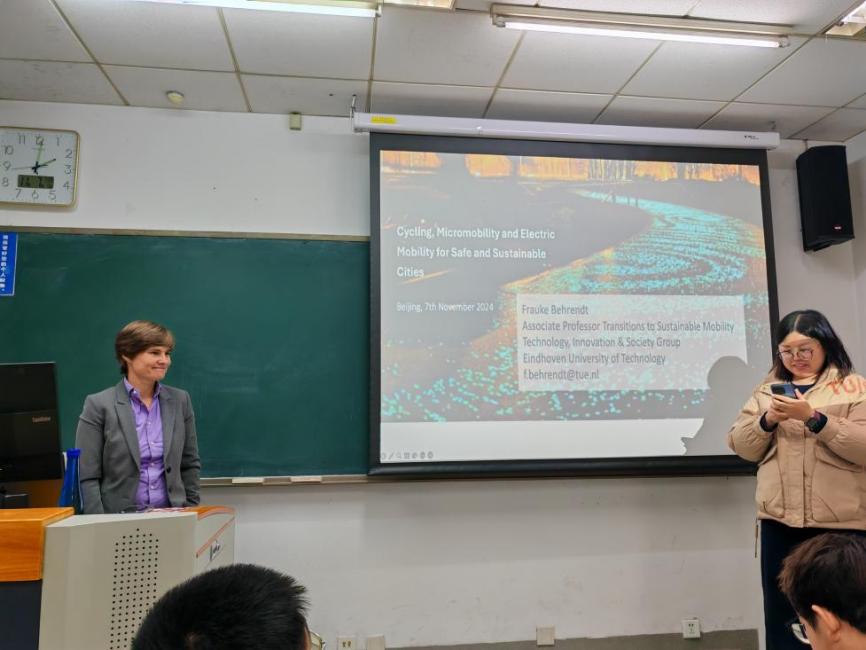 2024年11月7日14点,Frauke Behrendt副教授作了题为《Cycling, Micromobility and Electric Mobility for Safe and Sustainable Cities》的学术报告。本次报告由哈哈体育高然副教授主持,工程与项目管理2024级研究生参加讲座。Frauke Behrendt副教授简单介绍了埃因霍温理工大学的学术、创新和组织情况,并表示欢迎大家前往学习。