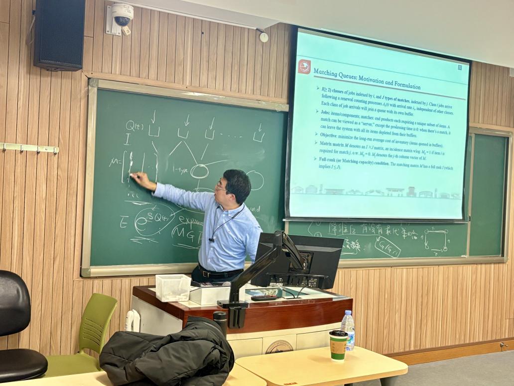 2024年11月24日下午,应哈哈体育的邀请,北京邮电大学理公司杨建奎教授做了题为“Optimal Control of Matching Queues with Some Extensions”的智能管理交叉学科学术交流讲座。本次讲座于公司南路校区主教313教室举行,由王金亭教授主持,中国科公司数学与系统科学研究院姚大成研究员、北京邮电大学理公司郭永江教授以及哈哈体育博士后和多位博士生、本科生参加了本次讲座。