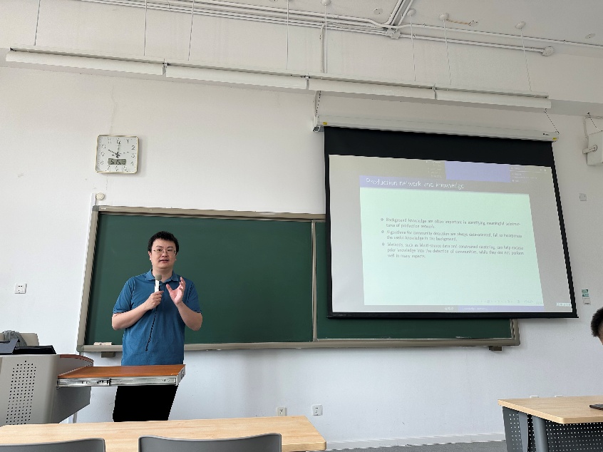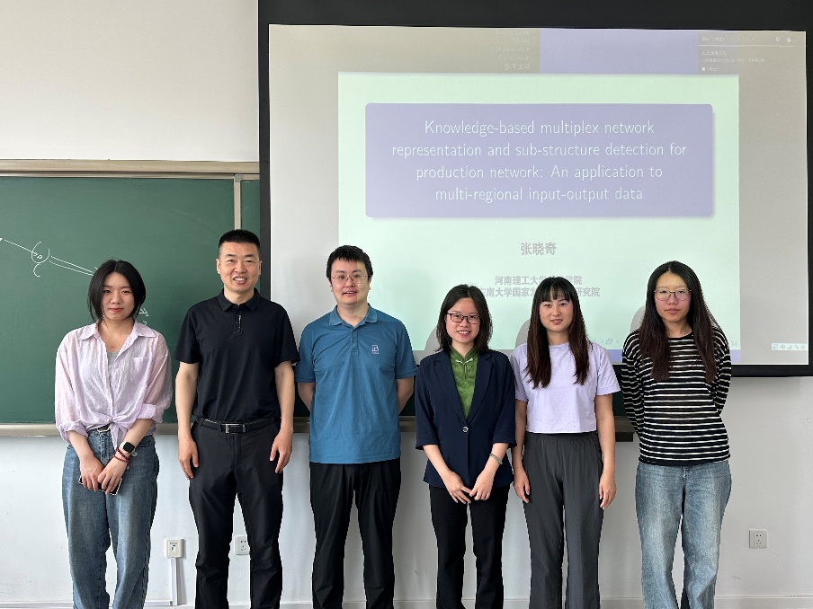 2025年5月15日上午,河南理工大学副教授张晓奇应邀在大数据与管理科学系列讲座上做了《A Knowledge-based multiplex network representation and sub-structure detection approach for asymmetric network: An application to multi-regional input-output network》主题报告。本次讲座在沙河二教204教室举行,由魏璐老师主持,哈哈体育硕士、博士生生参加了讲座。