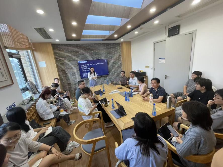 杨静教授以“Solar Energy and Energy Flexibility in Buildings, Communities, and Urban Precincts”为主题,系统分享了其在太阳能集成与城市能源转型领域的前沿研究成果。她围绕三大核心方向展开:一是建筑集成光伏(BIPV)的技术发展,涵盖数字化、安全性与国际标准制定,并介绍了其在国际能源署(IEA)光伏系统项目中的领导性工作;二是通过分布式太阳能推动社区与产业脱碳,构建更具韧性与可持续性的本地化能源体系;三是面向城市尺度的太阳能系统建模与优化,评估其技术可行性与经济潜力。报告内容深入浅出,兼具学术深度与实践价值,引发了现场师生的热烈讨论与积极提问。