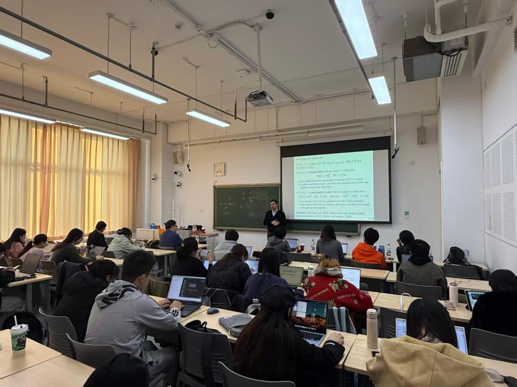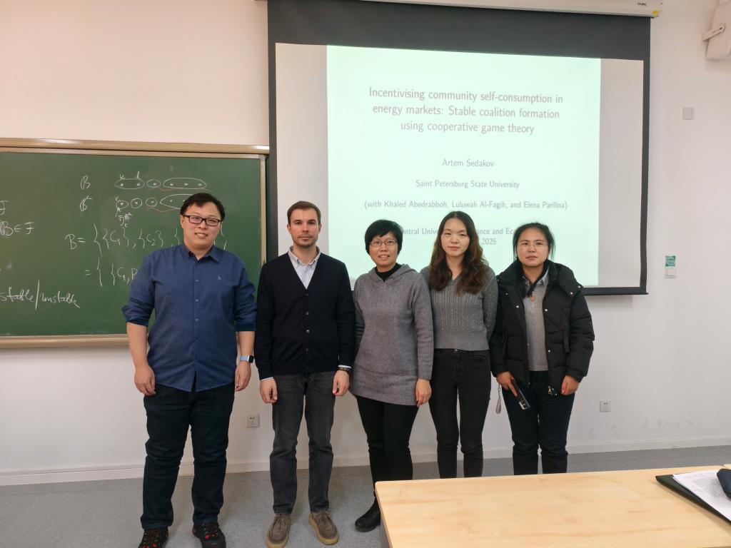 11月3日下午,HAHA体育管理科学与工程高端论坛(第34期)在沙河校区2教205成功开展。本次讲座邀请到圣彼得堡国立大学数学博弈论与统计决策系的Artem Sedakov教授担任主讲嘉宾,由哈哈体育李爱华教授主持,管理科学系唐昕迪老师、吴迪老师、胡菊香博士、中国科公司大学蔡思航博士、管理科学与工程博士生、硕士生等40余名师生参加了此次讲座。Artem Sedakov教授围绕论文《Incentivising community self-consumption in energy markets:Stable coalition formation using cooperative game theory》展开,聚焦能源市场中社区自消费激励的关键问题,从合作博弈理论视角深入剖析稳定联盟构建的路径与价值。