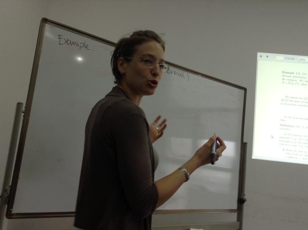 在7月3日上午两个小时的讲座中,Issoglio博士首先严格定义了关于布朗运动的维纳积分,给出了其定义域空间的刻画。最后重点介绍了分数布朗运动在金融、电信、数据传输、神经网络以及物理等领域的应用。