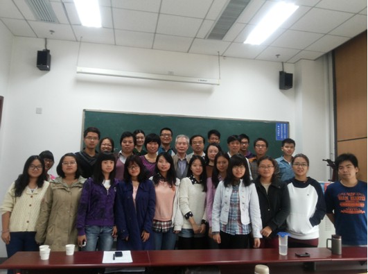 2014年10月9日上午10点,刘家壮教授在公司沙河校区主教302教室作了一场精彩的学术报告,报告的主题是论经济增长与碳排放减少的一致性,管理科学专业的三十余名师生参加这次学术讲座。