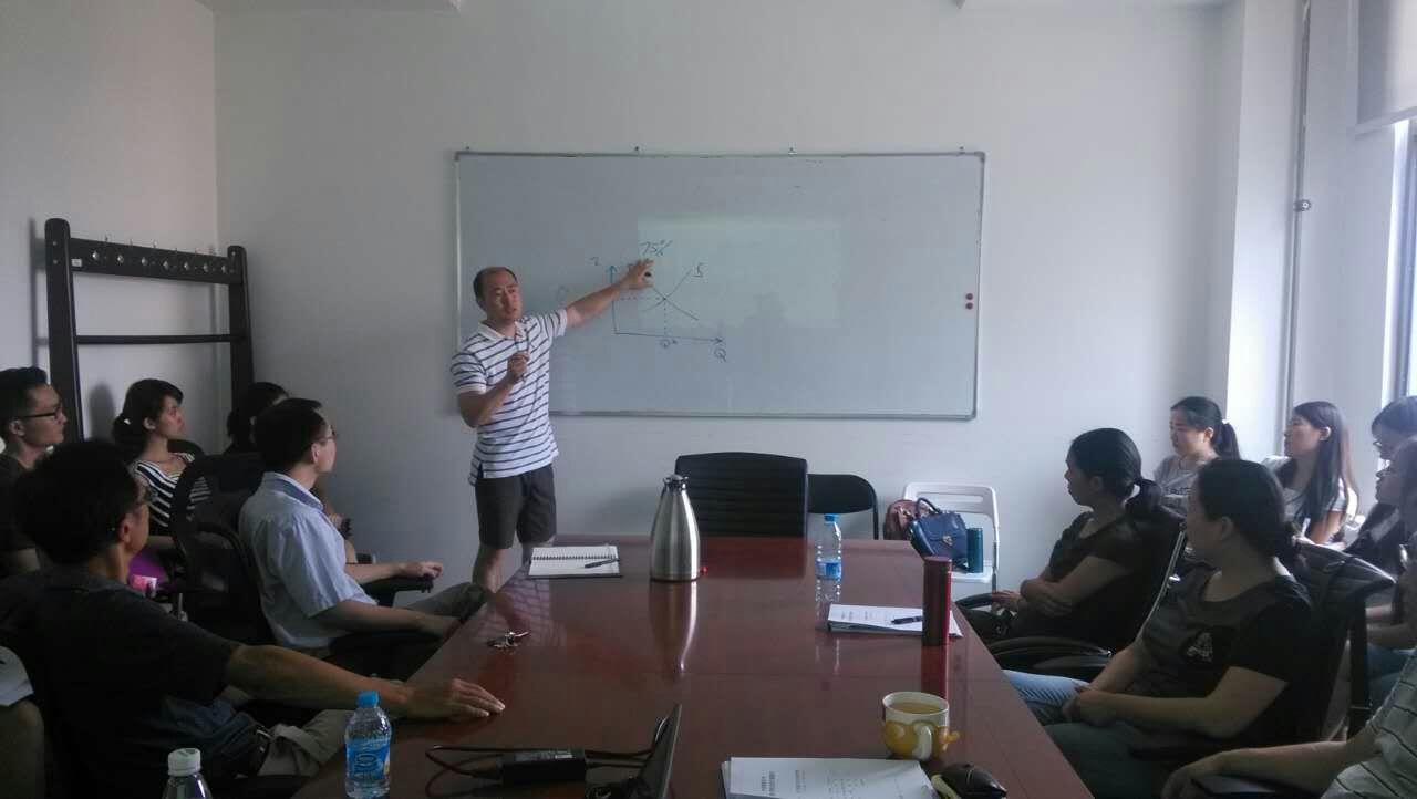 应哈哈体育应邀,美国宾州州立大学金融系彭亮副教授于2015年7月9日访问公司,并于当日下午2点在沙河校区公司4号楼318会议室举办学术讲座。哈哈体育经理李文斌教授、经理助理陈俊华副教授、城市与房地产系主任王志锋教授、房产系教师戴学珍、郑亮以及部分员工参加了讲座。