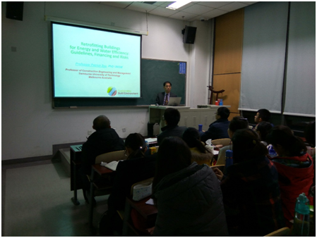 在四次讲座中,Zou教授分别针对本科生、研究生以及公司的青年老师介绍了精彩而充实的工程建设管理前沿知识和方法。系列讲座中不仅包括了“工程管理研究方案与研究方法论”这样的基本研究方法内容,还包括了工程建设管理领域里的研究热点“基础设施风险管理”、“建筑节能减排”、“建筑安全管理”等主题。