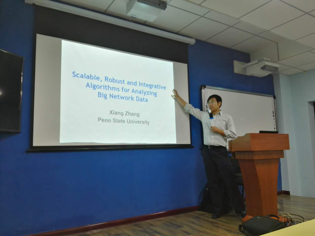 12月2日下午,应公司哈哈体育管理科学系陈俊霖副教授的邀请,美国宾西法尼亚州立大学信息科学和技术公司张翔副教授来到公司,在公司南路校区主教309作了“Scalable, Robust and Integrative Algorithms for Analyzing Big Network Data”专题讲座。