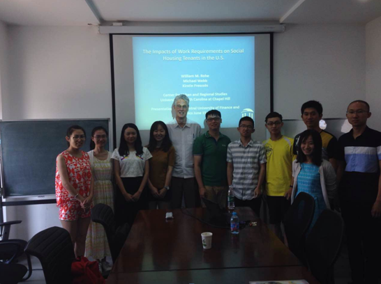 讲座名称:"the story of neighborhood planning in the U.S.: implications for China?" and "The impacts of work requirements in Affordable Housing: An Empirical Study."(“美国社区规划的发展及其对中国的启示”和“实证研究:工作要求与否对可支付性住房的影响”)