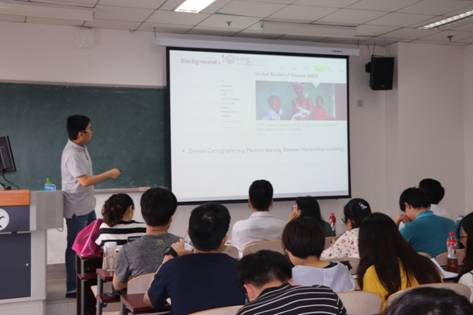 2018年7月3日下午14:00,巴黎巴斯德研究中心的王林博士受公司管理科学系李慧嘉副教授的邀请,来到公司进行学术交流,并在公司主教505教室进行了题为《Characterizing the dynamicsunderlying global spread of emerging epidemics》的精彩报告。项目管理系主任宋砚秋副教授、管理科学系副主任井帅副教授、统数公司张忠元教授、管理科学系孟凡博士等教师参加了此次报告,并同参加的同学与王林博士进行了深入交流。