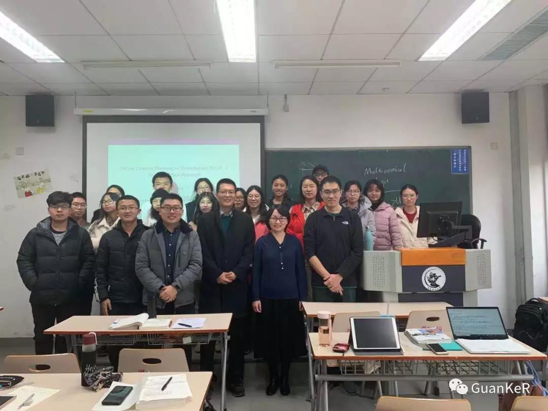 梁湧副教授提到了这篇论文的改进方向:现实中,顾客在面临缺货问题时不一定会像报童模型一样直接走开,而有可能是买另一个品牌,这种购买行为与商品的缺货顺序有关。同学们围绕着本次讲座的主题,向梁湧副教授提出了一些实际应用方面的问题,梁湧副教授对于这些问题详细地阐述了自己的观点,学术氛围浓厚且热烈,最后留下了珍贵的合影以作纪念。此次梁湧副教授的学术报告,深入浅出地介绍了自己的这篇获奖论文,不仅使各位同学获益满满,也让各位老师启发良多。