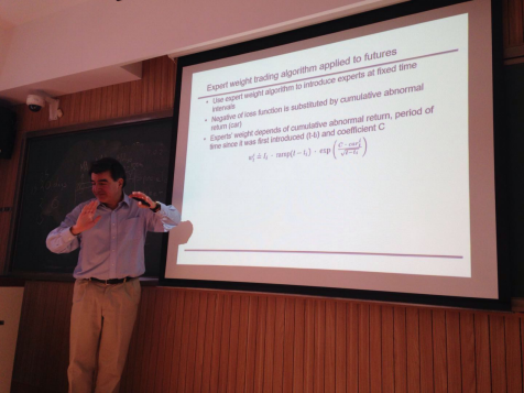 在对性能、特征选择和模型校准的课程讲述中,German G. Creamer副教授首先向同学们具体介绍了专家权重交易算法,通过细致的讲解同学们对该算法的公式以及具体应用都有了较为深刻的了解。接着,German G. Creamer副教授把主题切回到机器学习,向同学们讲授了算法在机器学习中的应用。最后,German G. Creamer副教授以投资领域为例,讲解了机器学习的应用方法。