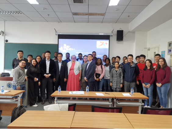 授课结束之后,同学们就自己感兴趣的问题向Coffman教授提问,Coffman教授一一为大家解答。本次授课开拓了同学们的国际化视野。会后大家与教授拍照留念,感谢教授带来的精彩讲解。Coffman教授就职于伦敦大学公司建筑环境,主要研究方向包括跨越基础设施、建筑、房地产和气候变化等领域,并担任经理一职。