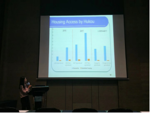 在随后的报告中,雷鸣同学受邀成为Housing Policy主题会场报告论文《Ecological Immigration, Multidimensional Poverty and Spatial Reconstruction —— Taking Liupanshan Minority Agglomeration Area in Ningxia as an Example》的评论人,雷鸣同学就文章写作出发,指出文章对宁夏六盘山的多维贫困问题,提出了新的测算指标,结合GIS等空间分析软件和相关空间分析方法,就六盘山的多维贫困演变过程进行了研究。同时,雷鸣同学指出文章对生态移民,多维贫困以及空间重构的逻辑框架值得进一步讨论。随后就多维贫困的测算指标选择进行了点评。同时提出了对多维贫困,生态移民的内涵与中国现状理解,并就其中的研究关系进行了评论。雷鸣同学的评论得到了在场主持人和论文作者的认同,并以此展开了讨论与交流。