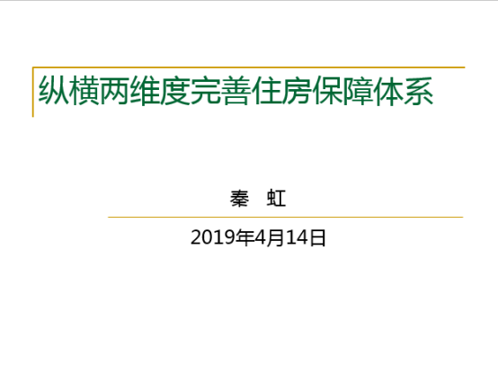 秦虹主任首先介绍了我国目前的住房保障体系建设思路,并从一个国际的视角讨论了住房保障的外部性。然后,从纵横两维度深入分析了住房保障体系的建设:纵向维度为保障房的内涵,要建立多层次,多维度的住房保障体系;横向从管理维度出发,建立精细化、精准化的住房保障体系,为完善住房保障体系提供了明确的思路。