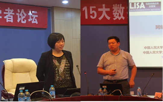 十一名学者结合大数据与管理科学的主题,作了精彩的报告。中国科公司数学与系统科学研究院杨晓光研究员的报告题目为《基于跨行大数据的企业行为分析和信贷风险管理》,基于跨行大数据分析了银行风险和企业贷款之间的关系,介绍了跨行信贷担保的网络特征和持股网络特征等。澳大利亚联邦科学与工业研究组织支志雄教授作了题为《基于空间和行为数据分析来提高澳大利亚老年人生活品质》的报告,基于空间和行为大数据研究了如何在不增加成本的情况下设计公共设施的分布等从而改善澳大利亚老年人的生活质量。澳大利亚维多利亚大学何静副教授作了题为《整合互联网安全和用户行为分析的综合互联网金融风险检测和预警系统研究》的报告,介绍了互联网金融的特点和与阿里巴巴的合作项目等,提出了互联网安全和用户风险控制必须整合起来考虑而不能分割等观点。中国人民大学许伟副教授作了题为《网络金融大数据分析》的报告,介绍了网络借贷的个人征信模型和企业征信模型等,认为大数据分析技术需要平衡效率和效果。另外,来自美国伊利诺伊理工大学的李坤博士、中国科公司计算所的乔治博士、以及公司管理科学系的李慧嘉博士、韩璐博士、陈俊霖博士、井帅副教授、李爱华副教授等分别作了论坛报告。