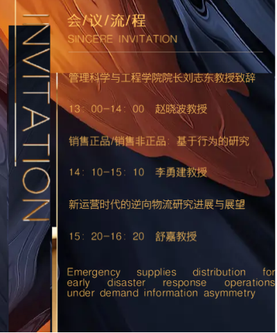 赵晓波教授发表了题为“销售正品/销售非正品:基于行为的研究”的主题演讲。该演讲的内容是关于售卖真品或欺骗性伪造品的两个卖家在竞争情形下的决策行为。赵晓波教授先开始介绍了行为运筹学的背景,表明行为运筹学在国内的起步较晚。接着,赵晓波教授阐述了自己的研究对象为欺骗性伪造品,即本应卖低价却卖出高价的伪造品,并且对自己的研究问题进行了论述。随后,赵晓波教授讲解了伪造品售卖决策的基础模型,最终结论表明:被查处的概率以及罚款会分别对卖假货概率产生影响;模型需要考虑随机选择概率、边际效应递减以及权重函数等因素。最后,赵晓波教授对两个卖家在竞争情形下的售卖行为进行了实验分析,最终结果显示:惩罚行为和需求不确定性会显著影响售卖行为;卖家在真品和伪造品之间进行转换会产生心理成本。