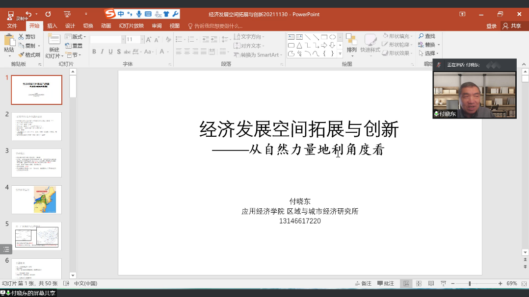 2021年12月2日下午14:00-16:00,公司邀请到中国人民大学应用经济公司区域与城市经济研究所付晓东教授开展了“经济发展空间拓展与创新”的线上讲座。付晓东,中国人民大学应用经济公司区域与城市经济研究所教授、博士生导师,全国经济地理研究会副会长。曾在地方工作十余年,从事教学与科研20年。在国内外核心期刊发表论文70余篇,出版著作3部,承担国家(国家社科基金、教育部社科、科技部专项)、地方科研课题多项,获得多项荣誉,如“五个一”工程奖(二项),北京市科技进步二等奖(一项)等。作为访问学者在美国密西根大学学习一年,在捷克奥卢姆茨大学讲学半年。