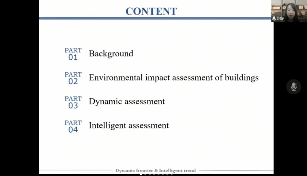 本次讲座主要分为四个部分:背景、建筑环境影响评价、动态评价和智能化评价。首先在介绍背景时,苏副教授指出当前全球面临的挑战之一是全球变暖,我国提出了“碳达峰和碳中和”战略,而建筑业是重点整治行业之一;接着在介绍以往建筑环境影响评价研究时,苏副教授主要介绍了条款式评价和LCA模型评价,并且对比了两者的优劣;在动态LCA评价方面,苏副教授介绍了四大动态要素,以及如何将时间因素融入LCA模型;在智能评价方面,苏副教授介绍了BIM-DLCA模型及其应用案例,使同学们对建筑产品环境影响的智能动态评价有了更深刻的认识;在讲座末尾,苏副教授表示当前的研究还只是聚焦单体建筑物,在未来还可以将模型方法进一步推广到行业、产业和区域。