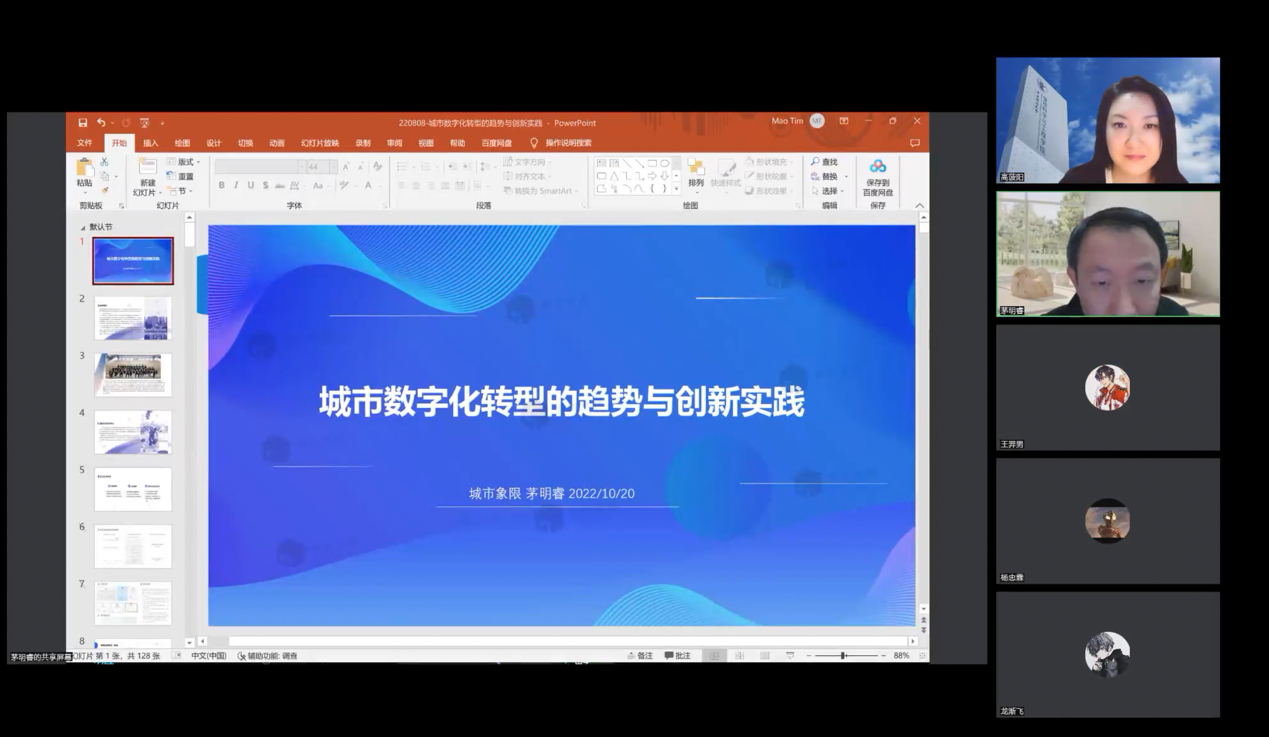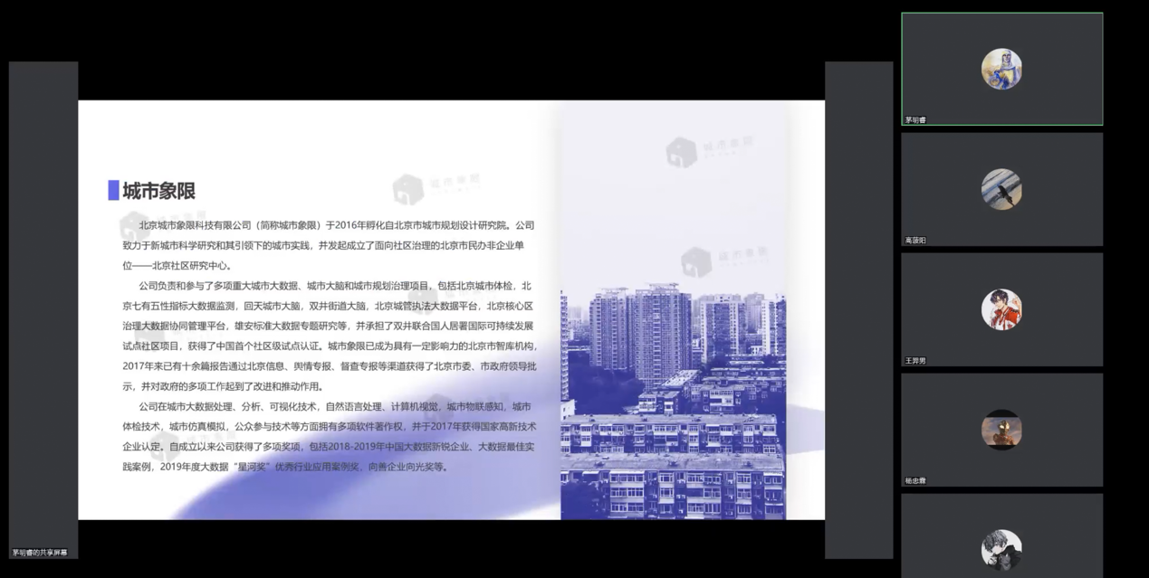 2022年10月20日,由哈哈体育主办,哈哈体育高菠阳老师主持,影响未来经济的新科技与新产业系列讲座邀请了北京城市象限科技有限公司创始人、CEO,北京社区研究中心主任茅明睿老师,以《城市数字化转型与创新实践》为题,在线上为同学们带来了一场生动的讲座。茅明睿老师曾长期担任北京市城市规划设计研究院规划信息中心副主任、云平台创新中心秘书长。现担任有住建部科学技术委员会人居环境专委会委员和社区建设专委会委员、全国自然资源与国土空间规划标准化技术委员会国土空间规划分技术委委员、中国城市科学研究会城市大数据专业委员会副秘书长等多项社会职务、学术职务。