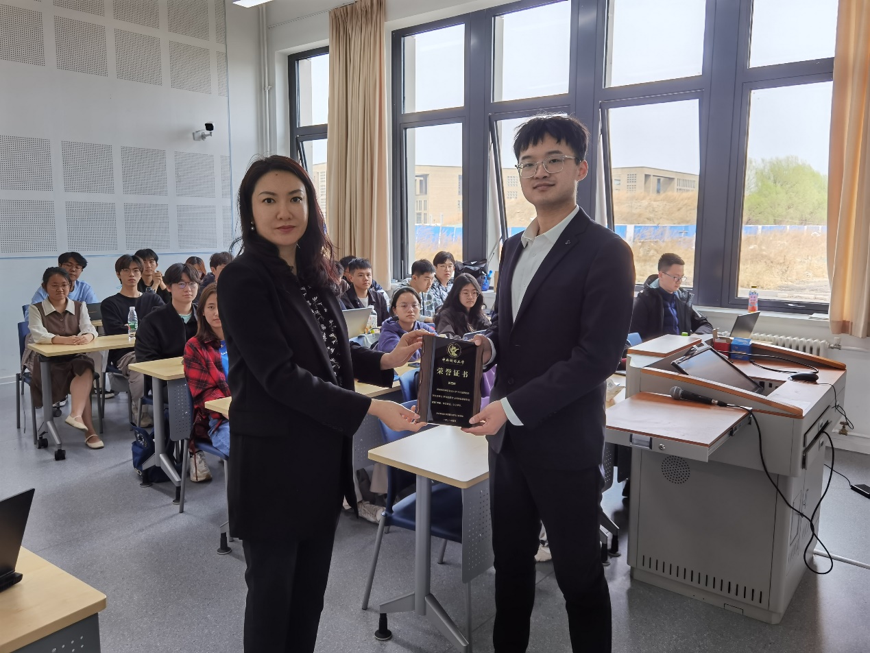 在讲座部分结束后,实验项目的各位学员就创新比赛与创业实践等多方面问题与刘巴特同学展开了热烈的讨论,同学们均受益匪浅。高菠阳教授向刘巴特同学赠与荣誉证书,并再次向刘巴特同学及所有与会学员表达了衷心的感谢,期望未来能有机会再次与刘巴特同学交流学习。