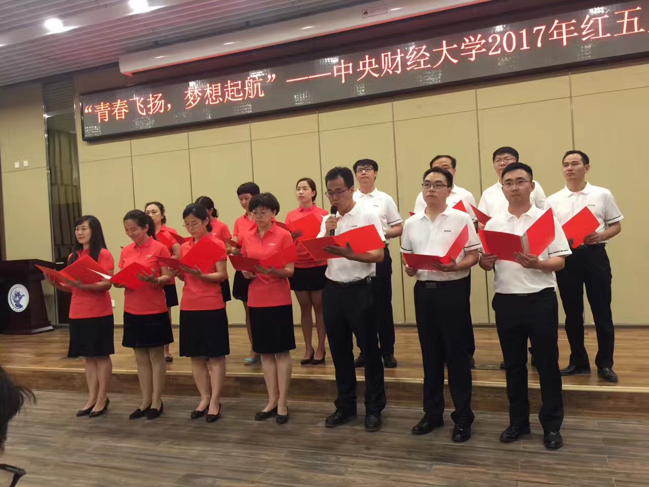 5月31日下午,初夏骄阳似火。公司分工会组队,参加了公司2017年红五月歌咏比赛。公司党委书记姜涛、副经理刘志东、党委副书记兼工会主席贾传亮,与公司十余位老师一起朗诵了诗人食指所作的朦胧诗《相信未来》。