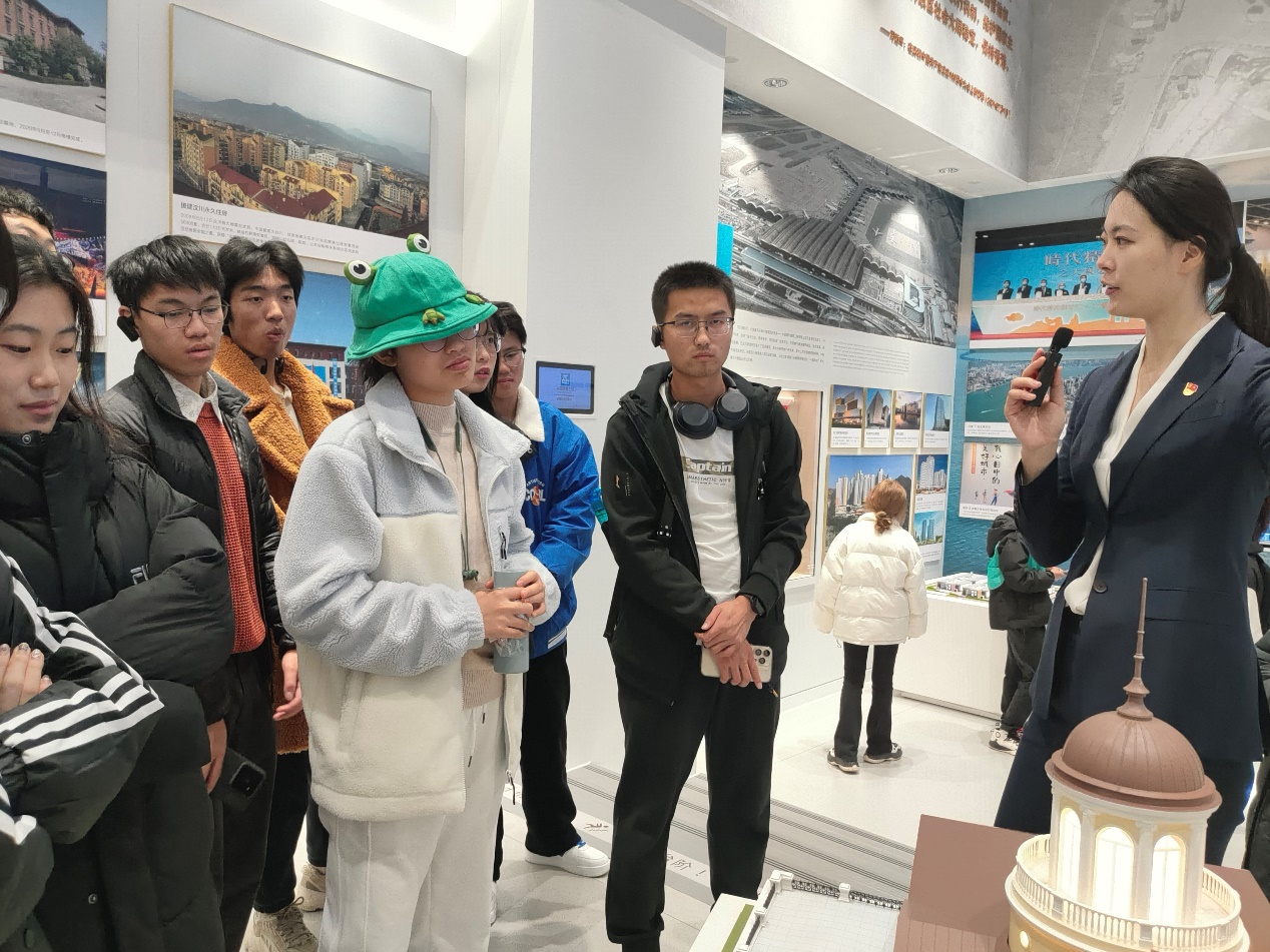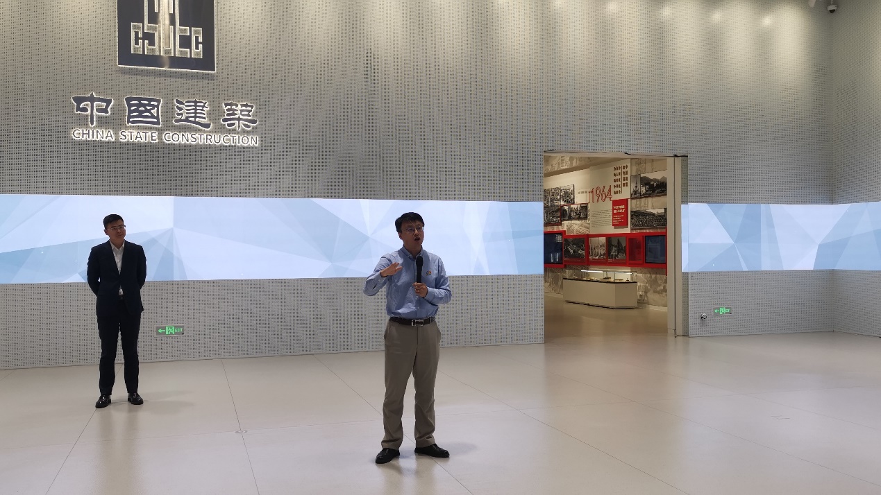 接着,在中国建筑展厅讲解员们的带领下,参加活动的师生分批参观了展厅的“初心使命”“央企担当”“世界一流”三大板块。其中,在“初心使命”板块,师生们系统了解了中国建筑各子企业的成长过程和组建历程。在“央企担当”板块,通过建造火神山医院和雷神山医院等项目,体现了中国建筑在关键时刻“顶梁柱、顶得住”作用,彰显了央企在践行国家战略、引领行业发展等方面的突出成就。在“世界一流”板块,讲解员向师生们展示了中建集团在技术创新等领域的突破。