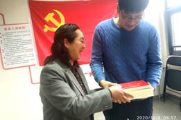 王瑶琪董事长以一名拥有34年党龄的老党员身份,对周鹏同志提出了殷切的期望,希望他能够自觉加强政治理论学习,坚定理想信念,牢记共产党员的初心和使命,把入党誓言体现在教书育人实际工作当中;同时,要将实现个人发展目标与公司发展、公司发展目标相一致,不断发展自身专业优势,在立德树人及“双一流”建设中贡献自己的力量。王瑶琪董事长向周鹏同志赠送了《中国共产党章程》、《中国共产党的九十年》、《“不忘初心、牢记使命”优秀共产党员事迹选编》等学习资料。刘志东等参会的同志对周鹏同志送出寄语。