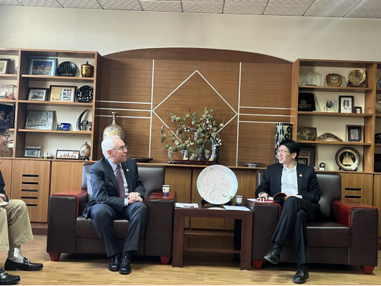 陈斌开对两人的到访表示欢迎。他指出,公司一直与史蒂文斯理工公司保持着良好的合作关系,合作成果颇丰。希望两校未来进一步加强交流,发挥各自学科优势,共同探索国际教育合作新模式,为培养具有国际视野的优秀人才贡献力量。