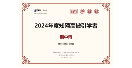 近日,中国知网公布了2024年度知网高被引学者名单,公司荆中博副教授荣获“2024年度知网高被引学者”称号。