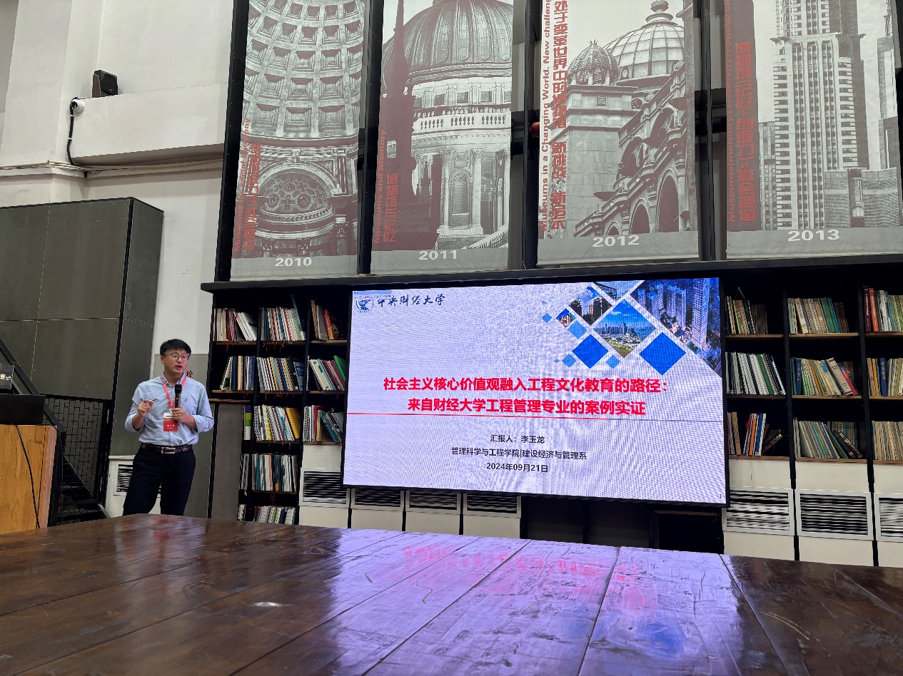 李玉龙教授在“工程管理类专业教学创新论坛”的报告题目为《社会主义核心价值观融入工程文化教育的路径:来自财经大学工程管理专业的案例实证》,围绕社会主义核心价值观融入工程文化教育这一思政议题,辩证分析了融入必要性、提出了融入框架、阐述了融入路径、描绘了实施路线图,并以中财大工程管理专业的案例分享了经验和成效。该报告展示了李玉龙教授主持的HAHA体育教师“思政+”专项基金——社会主义核心价值观融入工程文化教育的路径研究——的核心研究成果。