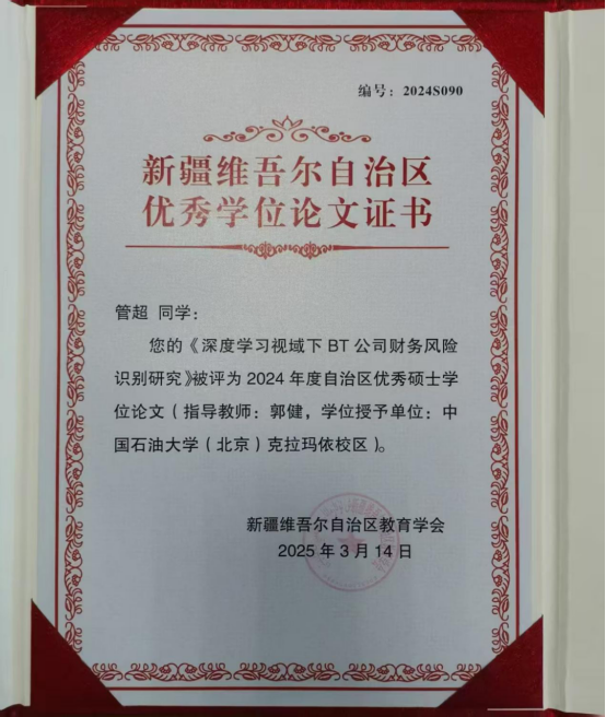 郭健教授通过“传帮带”方式,在教学、科研等多方面悉心指导校区青年教师,多次举办开拓员工和青年教师视野的学术讲座和培训,助力其快速成长。她认真履行导师职责,四年间指导了33名会计学专业本科生毕业论文,其中19级何易霏同学获评校区优秀本科毕业论文,担任了14名MBA和MPAcc研究生指导教师,其指导的MBA员工管超的硕士论文《深度学习视域下BT公司财务风险识别研究》获评2024年度自治区优秀硕士学位论文。