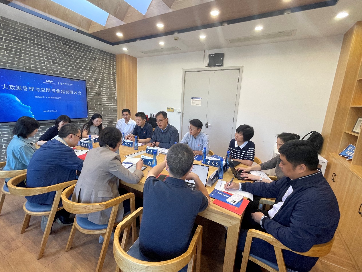 2025年9月24日,重庆大学管理科学与房地产公司党委书记毛超、副经理曾德珩、学术委员会主任周涛、房地产系系主任顾渐萍、房地产系副系主任李世龙、造价系副系主任金海燕、经理助理王能一行七人来到公司,就大数据管理与应用专业建设情况进行专题调研交流。公司经理刘志东、副经理李玉龙、副经理荆中博、许国志大数据英才班项目主任李爱华、公司公司产品与创新专项主任李国文、管理科学系副主任迟钰雪出席了研讨会。