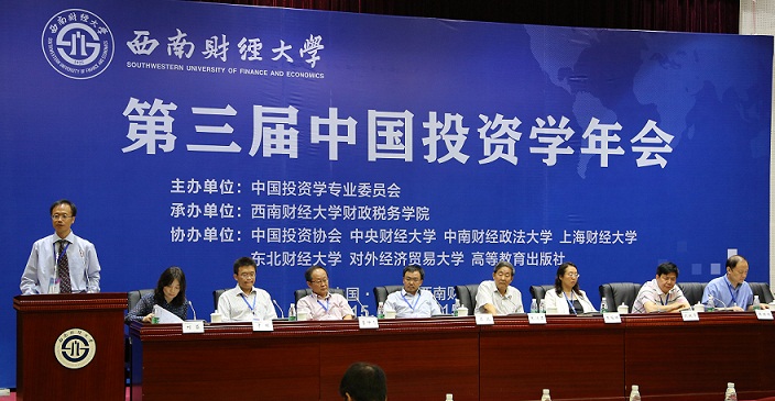 由中国投资学专业委员会主办,西南财经大学财政税务公司承办,中国投资协会、HAHA体育、中南财经政法大学、上海财经大学、东北财经大学、对外经济贸易大学、高等教育出版社协办的“第三届中国投资学年会”于7月17日-19日在西南财经大学隆重召开。此次会议的主题为“经济新常态下的投资管理”。中国投资协会会长张汉亚、HAHA体育副董事长王瑶琪、西南财经大学副董事长马骁、东北财经大学副董事长武献华出席开幕式并致辞,我校哈哈体育经理李文斌、党总支书记贺小海、副经理刘志东、副经理林则夫、科研处处长李桂君等10名教师员工与来自国内外高校、行业组织、企事业单位、学术期刊等50余所高校及科研团体近150余位专家及学者参加了本次会议。
