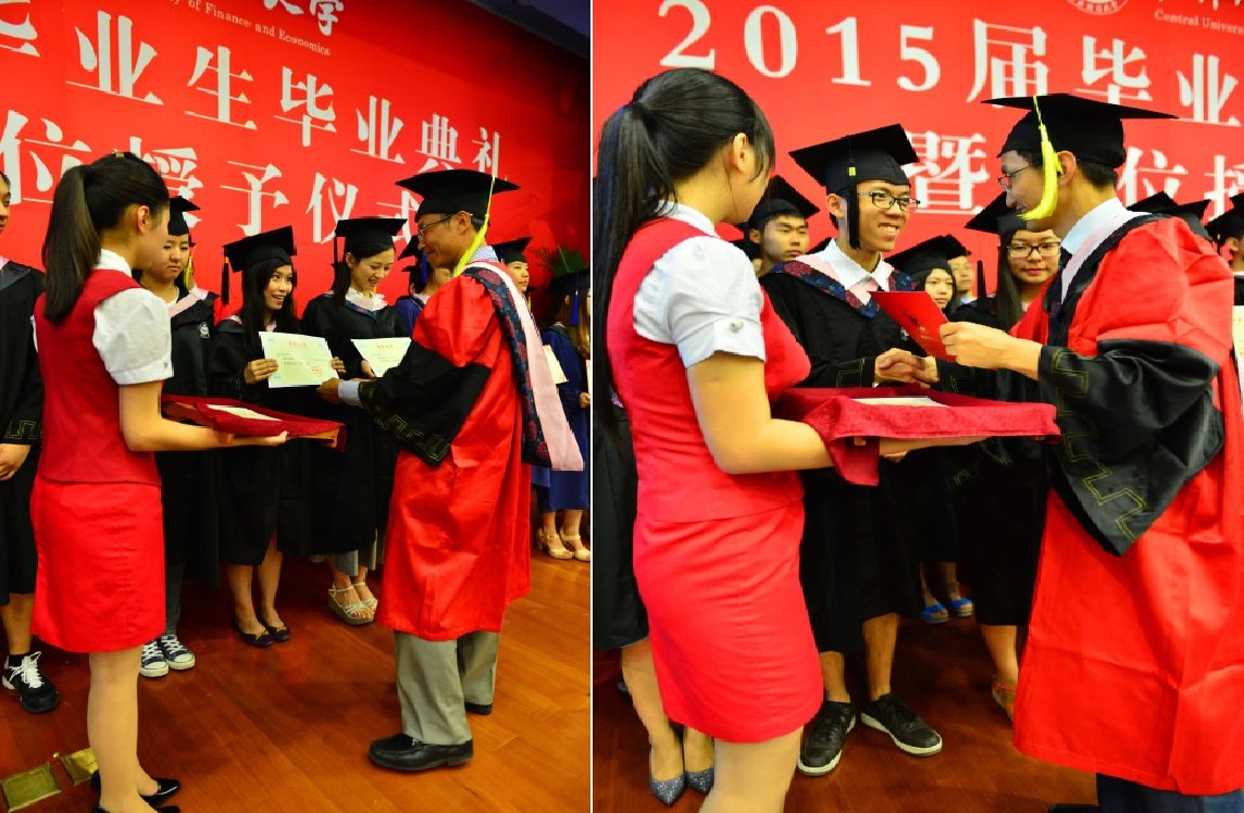 随后,党总支副书记贾传亮宣读了“关于2015届研究生毕业及授予学位的决定”及“关于2015届本科生毕业季授予学士学位的决定”。经理李文斌、党总支书记贺小海共同为2015届毕业生拨转流苏、颁发毕业证书和学位证书,并送上美好的祝福,表达殷切的期望。