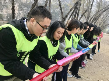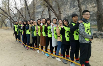 到达十渡后,同学们跟随教练开始团建活动。首先,全部同学分为红绿两组。红组队名为“必胜队”,队伍口号即是校训“忠诚、求实、团结、创新”;绿组队名为“扫雷队”,队伍口号是“生死看淡,不服就干”。两组队员都十分团结积极,在“不倒森林”、“接力传球”和“绑腿齐步走”的三个团队训练中,都展现出了极强的团队协作精神和战略意识。