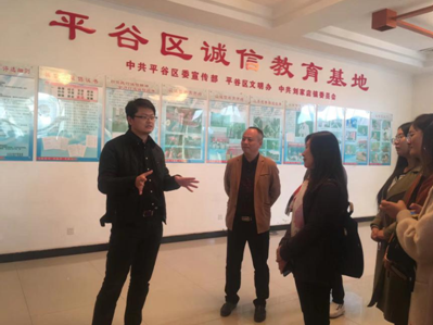 “生态桥”的参观结束后,公司师生来到行宫村,实地考察该村的“村情民史博物馆”和平谷区诚信教育基地。刘晓东书记向大家介绍了当地的语言和文化特色、铸造诚信品牌的十年规划、“诚信之星”的评选细则、诚信公约的实施效果等。在图文并茂的展板和绘声绘色的介绍中,大家得以深入了解行宫村如何在党支部的引领下实现了“种厚德果、结诚信缘”,通过诚信厚德文化的大力宣传推广,实现了诚信促增收的可持续发展模式。