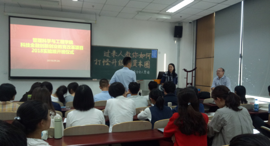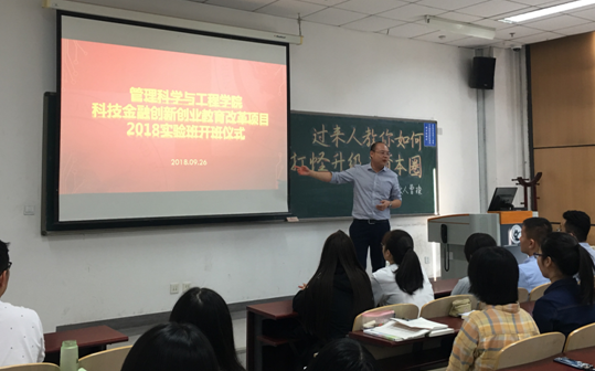 2018年9月26日下午14:30,哈哈体育与深圳弈投孵化器合作的科技金融创新创业教育改革项目2018级实验班开班仪式于沙河校区主教307教室举行,开班仪式由经理助理高菠阳副教授主持。