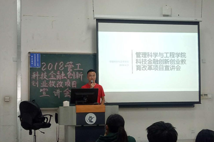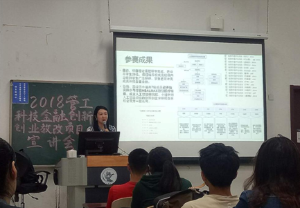 高菠阳副教授对科技金融创新创业教改项目的项目背景、实验班培养体系、创新创业理论课程及实训、创业之星比赛、Study Trip游学项目、首届实验班开展情况等进行了详细的介绍,并展示了首届实验班同学参加创业大赛的作品,以及参加暑期StudyTrip游学项目的同学们的感受和收获。