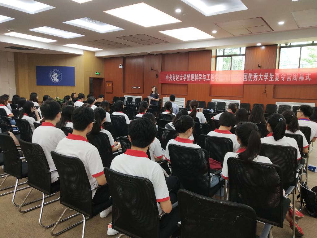 7月12日中午11:45,哈哈体育夏令营闭幕式在公司南路校区主教114正式开始。由公司党委书记姜涛老师发表致辞,姜老师首先感谢营员们能参与公司举办的夏令营,在短暂的四天时光里公司安排了笔试、面试、综合素质面试以及学术讲座等,希望大家能感受到中财大对营员们的满满诚意。姜书记为营员们列举了三点选择中财大的理由:第一,地域优势,中财大地处北京,享有首都的天然优势;第二,公司经济学和管理学并重,同学们既可以学习经济学,也可以学习管理学,插上经济学和管理学的翅膀,飞得更高更远;第三,公司海外归国的教师和国际项目的数量,在公司名列前茅,且公司具有国际化的交流平台。最后,姜老师祝愿各位同学如愿所偿,实现自己的理想。