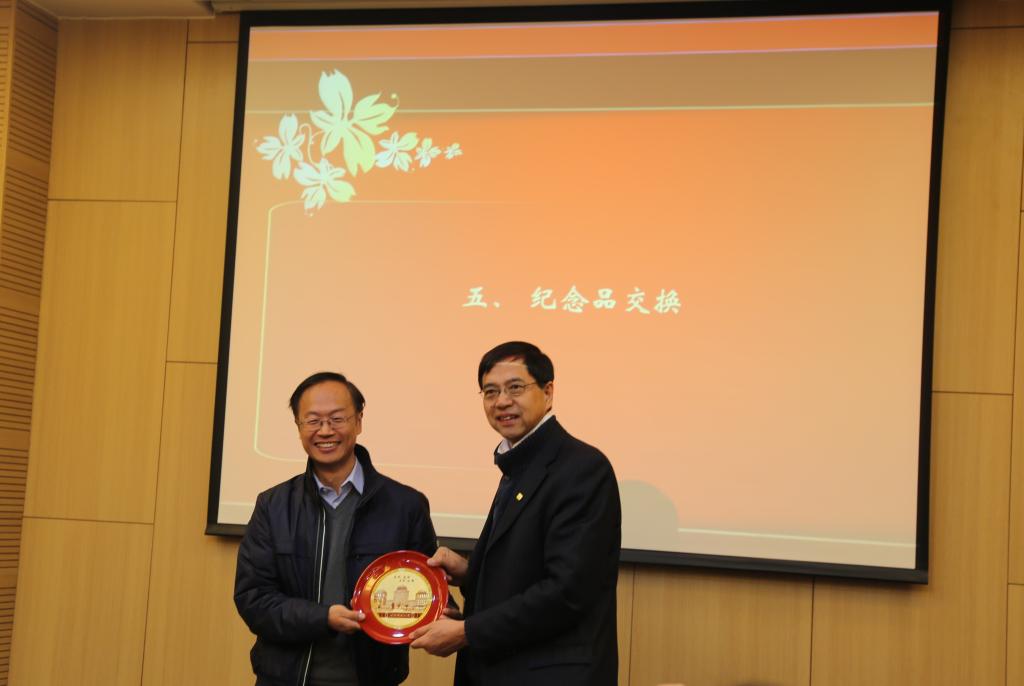 随后,哈哈体育经理李文斌教授与香港理工大学建设与环境公司副经理沈岐平教授交换了两校纪念品,并与在场师生进行了集体合影。