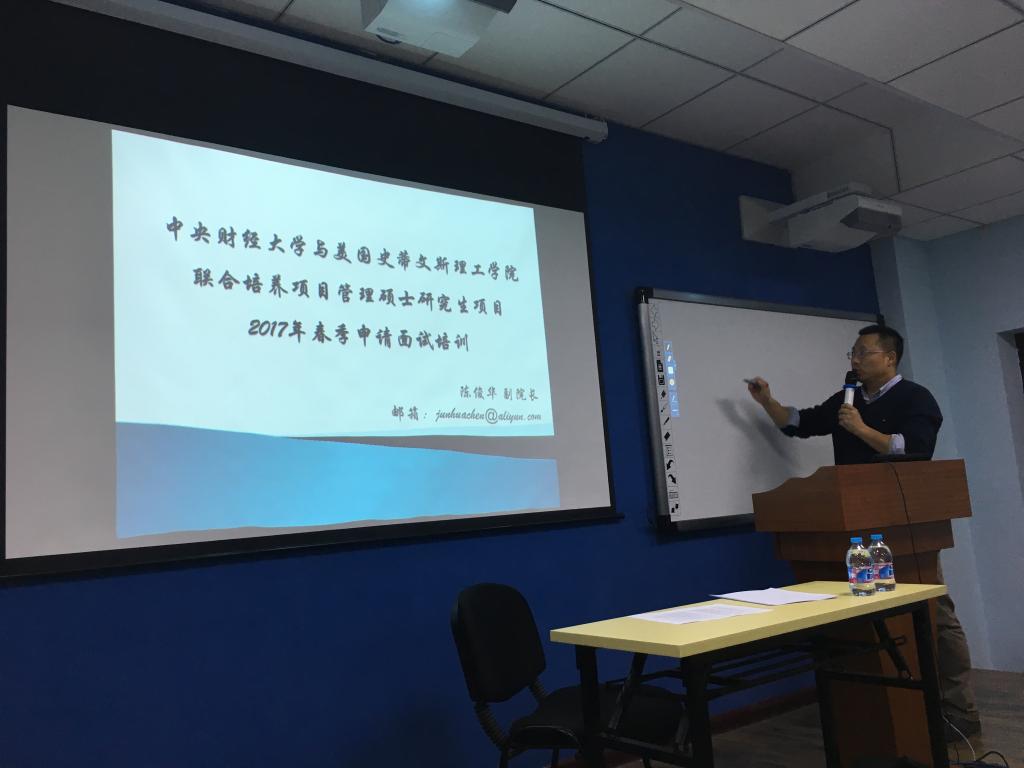 本次面试培训主要面向申请中财史蒂文斯联合培养项目第12期春季班的同学们,主讲的陈老师有着丰富的留学经验和项目管理经验,希望本次培训能帮助同学们在接下来与美方老师面对面的培训中有更好的表现。