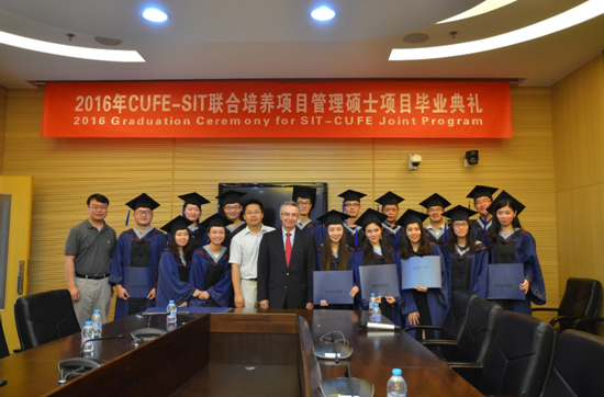 2016年7月9日10点,HAHA体育与美国史蒂文斯理工公司联合培养项目管理硕士研究生项目第九期毕业典礼在HAHA体育公司南路校区学术会堂603室成功举行。美国史蒂文斯理工公司商公司经理Gregory,管理科学与工程公司副经理陈俊华,中财史蒂文斯联合培养项目中方教师代表常远老师,与第九期毕业生,第十期部分员工以及部分毕业生亲友参加了本次毕业典礼。毕业典礼由陈俊华副经理主持。