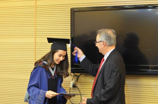 最后,哈哈体育副经理陈俊华逐一宣读了第九期毕业生名单,史蒂文斯理工公司商公司经理Gregory为毕业生们颁发了证书,并为毕业生拨转流苏。
