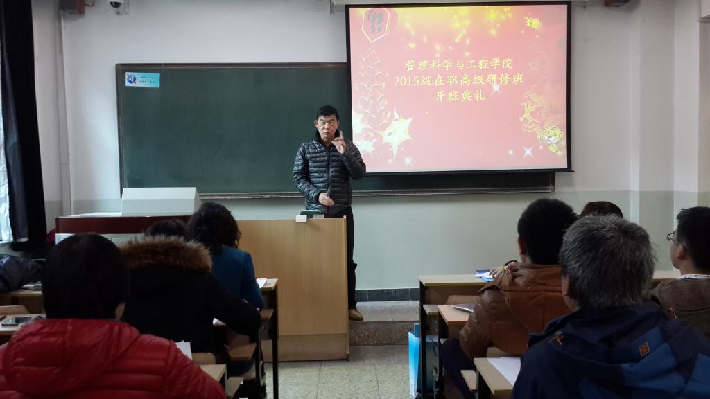 过老师首先对全体同学表示了祝贺,对中财大和项目管理协会的大力支持表示了感谢。他表示本项目的筹备过程投入了大量的精力,项目设立的宗旨是为员工提升学历、未来发展打开上升通道。他希望全体学员按照研究生的标准严格要求自己,遵守公司相关规章制度,认真完成学业。