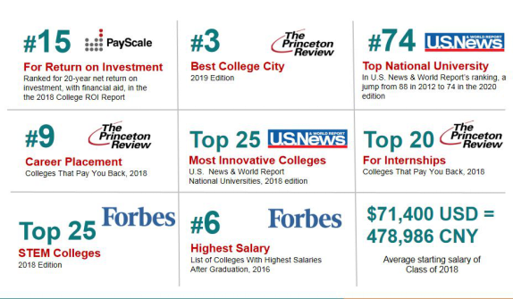 ✩福布斯杂志2018年发布,毕业生实习回报率排名第20位