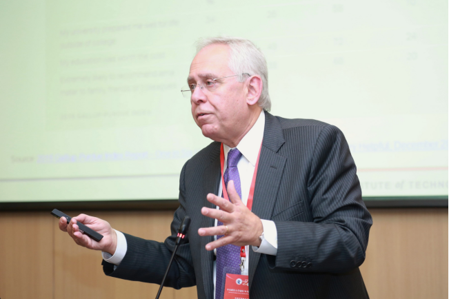 10月18日下午,Chassapis教授参加了题为“社会变革中大学的责任与担当”HAHA体育建校70周年董事长论坛。并在在主论坛结束后,参加了平行分论坛“人工智能时代的高等教育变革”。Chassapis教授就美国大学如何应对人工智能时代所产生的高等教育问题与10余名国内外高等教育学领域的知名专家学者进行了深入探讨。