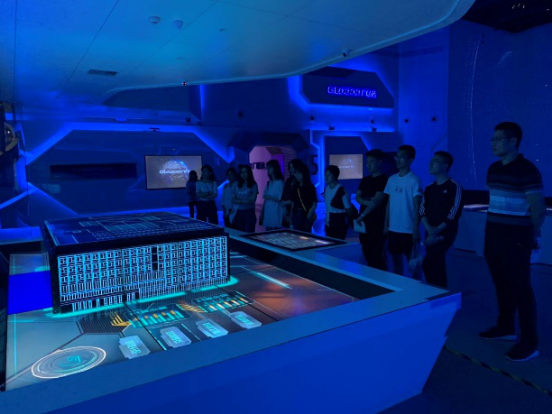 数字化建筑体验馆参观。讲解员为同学们介绍了BIM技术在未来建设项目全生命周期中的应用步骤,同时也介绍了广联达未来在智慧城市等信息化建设方面的发展方向。