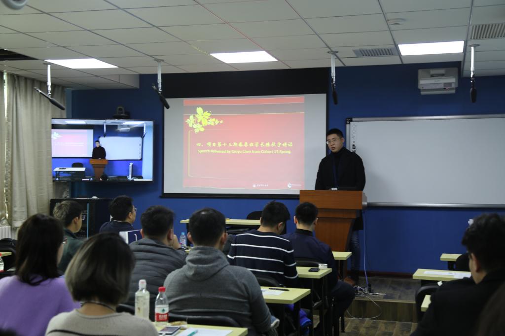 十三期秋季班新生代表栾贺表示,作为一名已经工作多年的员工,会珍惜这次的学习机会,一方面提升个人学历水平,另一方面也努力提升个人的相关能力,并表达了对未来两年习生活的期待。